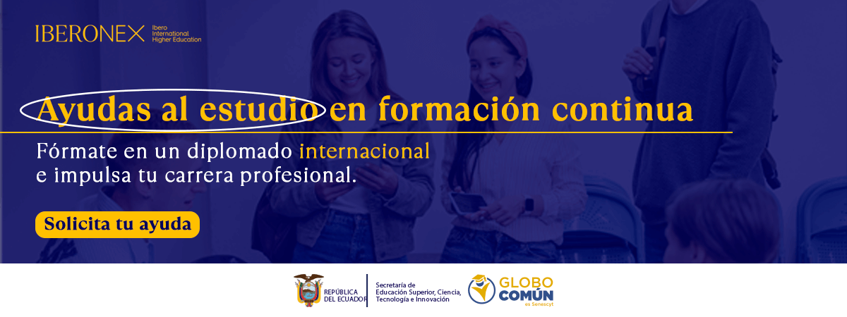 IBERONEX y la Secretaría de Educación Superior, Ciencia, Tecnología e Innovación – SENESCYT, en el marco del relacionamiento internacional y cooperación con Planeta Formación y Universidades, convocan un total de 18 ayudas al estudio para aquellos candidatos y candidatas ecuatorianos y/o residentes en Ecuador que hayan sido preseleccionados por la SENESCYT para cursar estudios de formación continua en modalidad online en programas de IBERONEX, iniciando la formación en septiembre y noviembre de 2024.